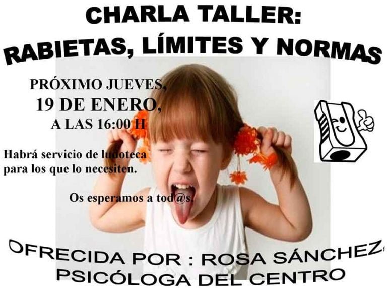 Charla-Taller: «rabietas, límites y normas».19/01/2017 Queridas familias: este jueves 19 de enero de 2017, el gabinete psicopedagógico del centro impartirá la charla de escuela de