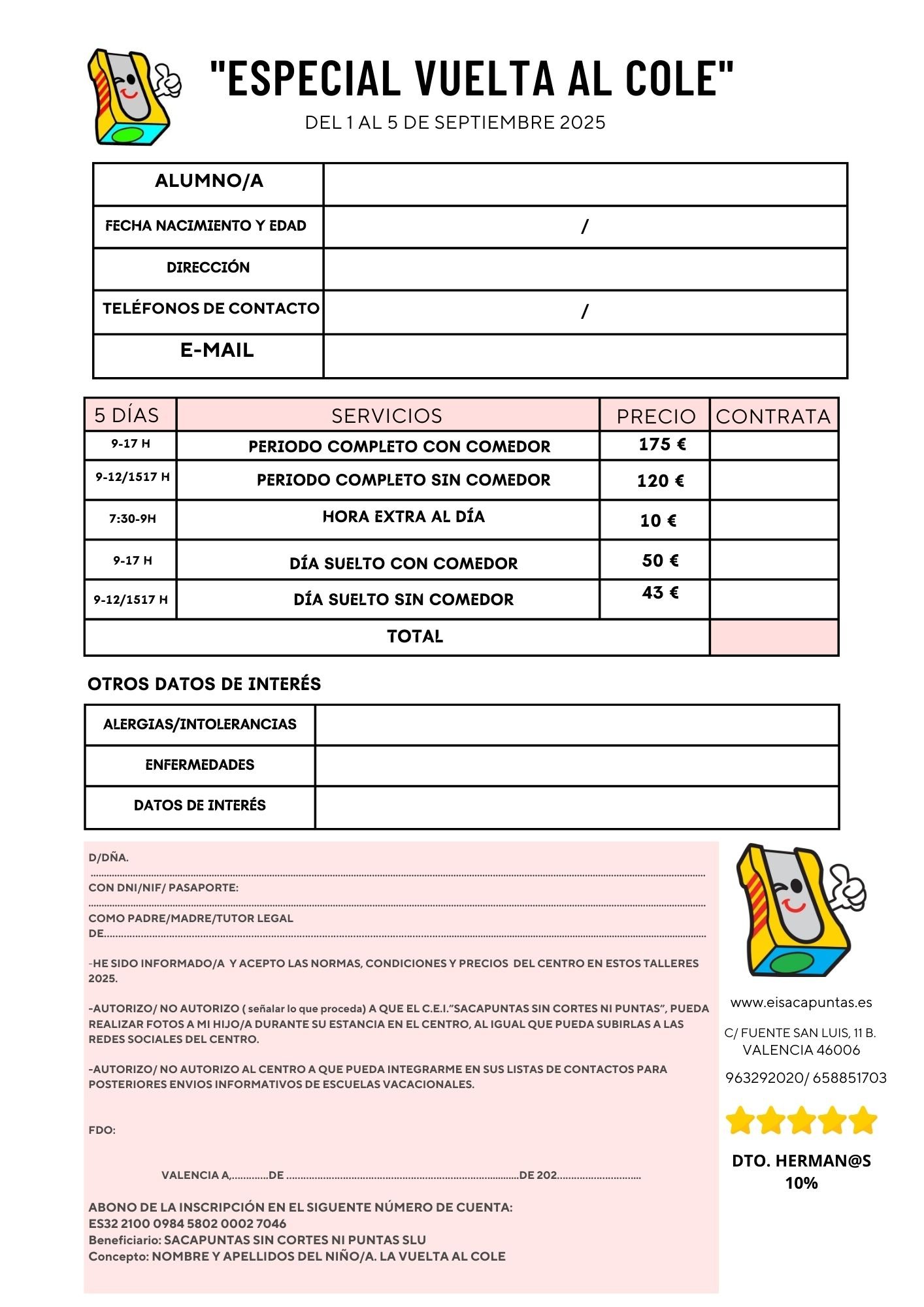 Inscripciones abiertas del 20 al 28 de agosto del 2025, o hasta completar plazas.